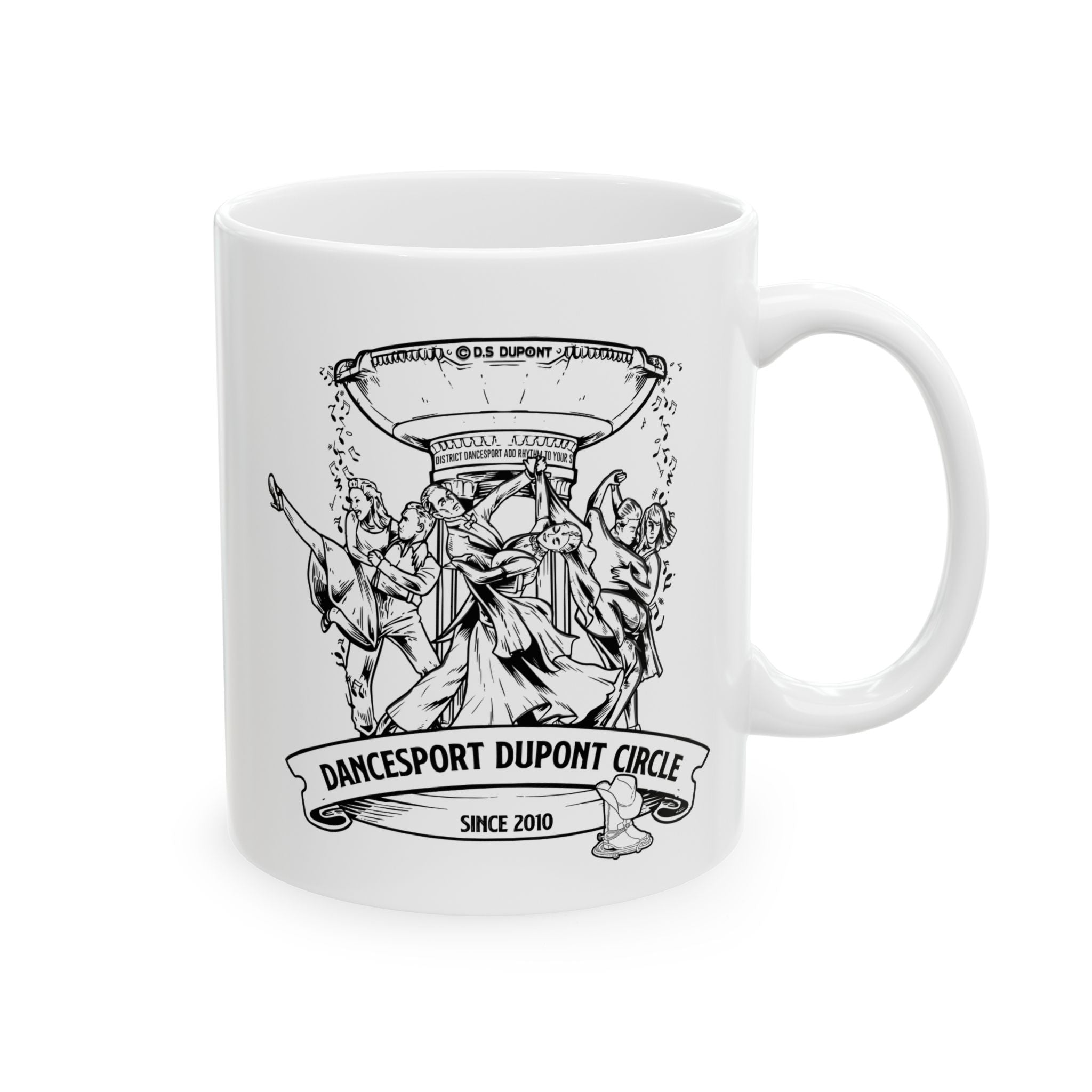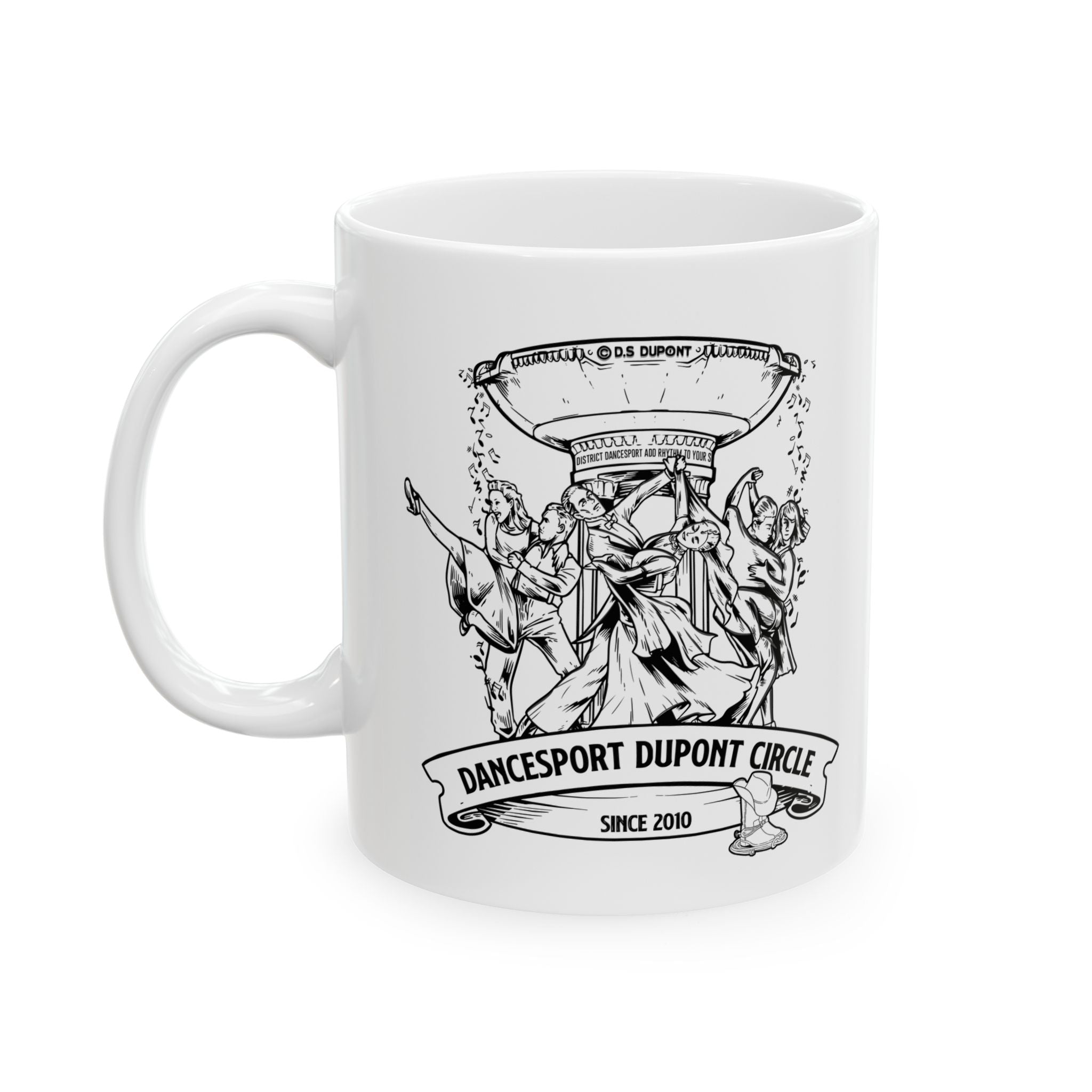Available in a classic white design with the DanceSport DuPont Circle logo, this mug is both stylish and functional. Perfect for daily use or as a special keepsake.