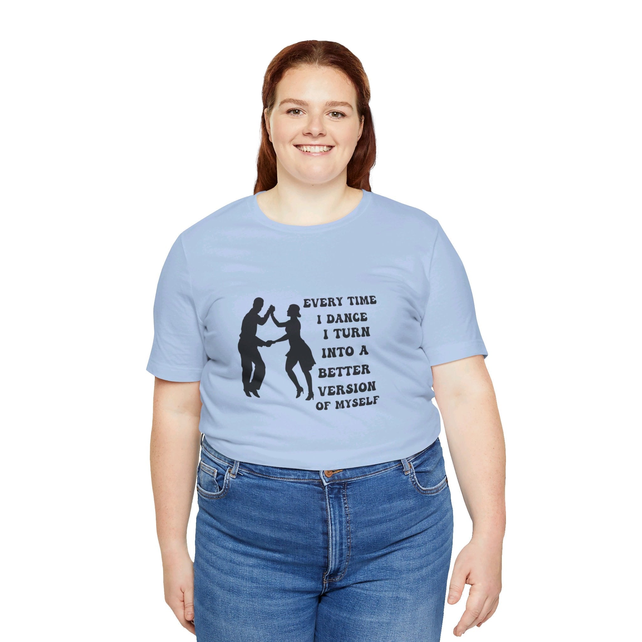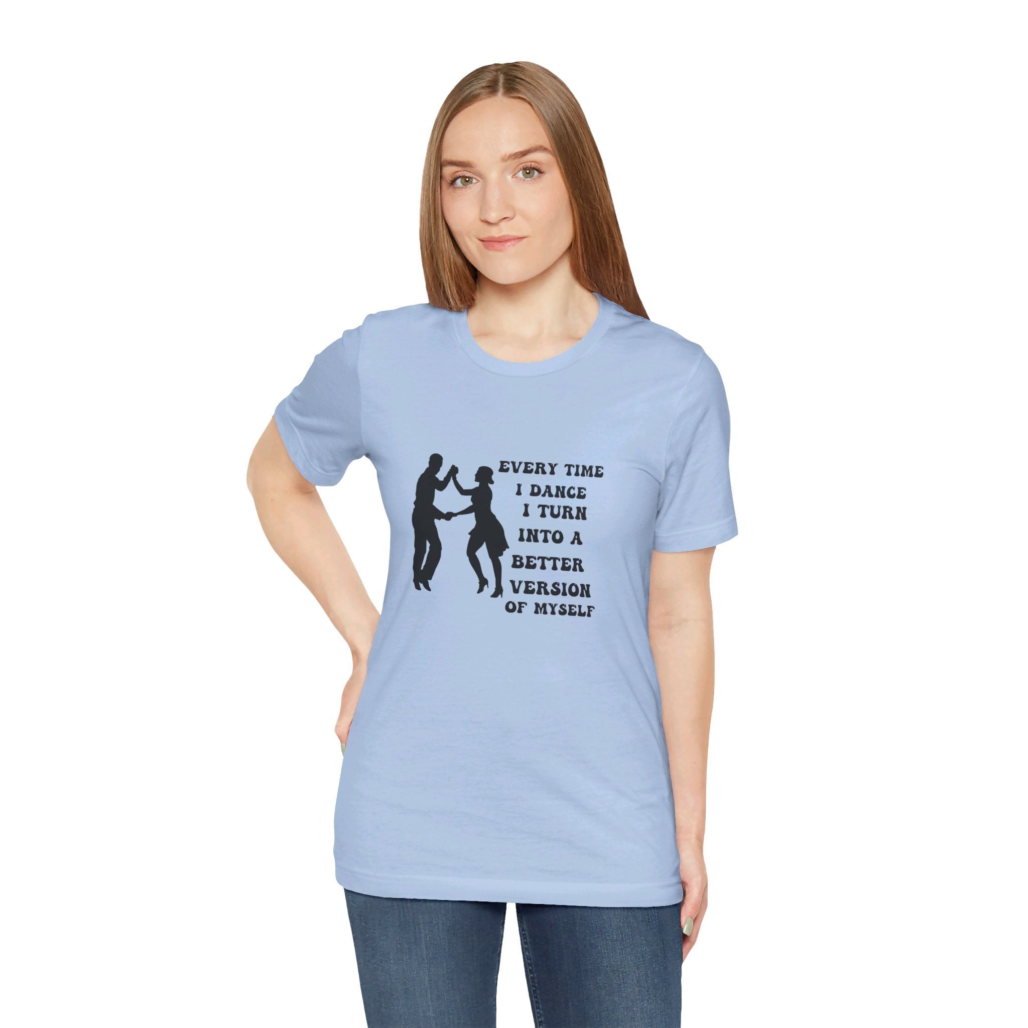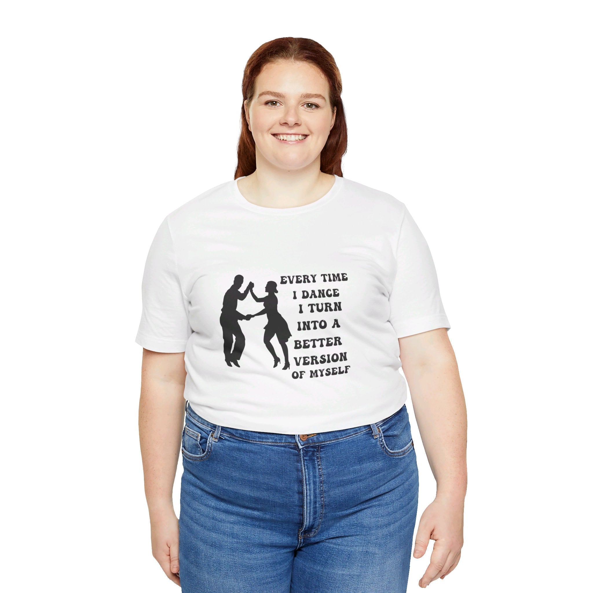 Celebrate the transformative power of dance with our "Every Time I Dance I Turn Into A Better Version Of Myself" shirt. Perfect for those who find joy, growth, and self-improvement through dancing, this shirt is a stylish and meaningful addition to any dancer's wardrobe. Whether you’re a seasoned dancer or just starting, this shirt captures the essence of what dance means to you.