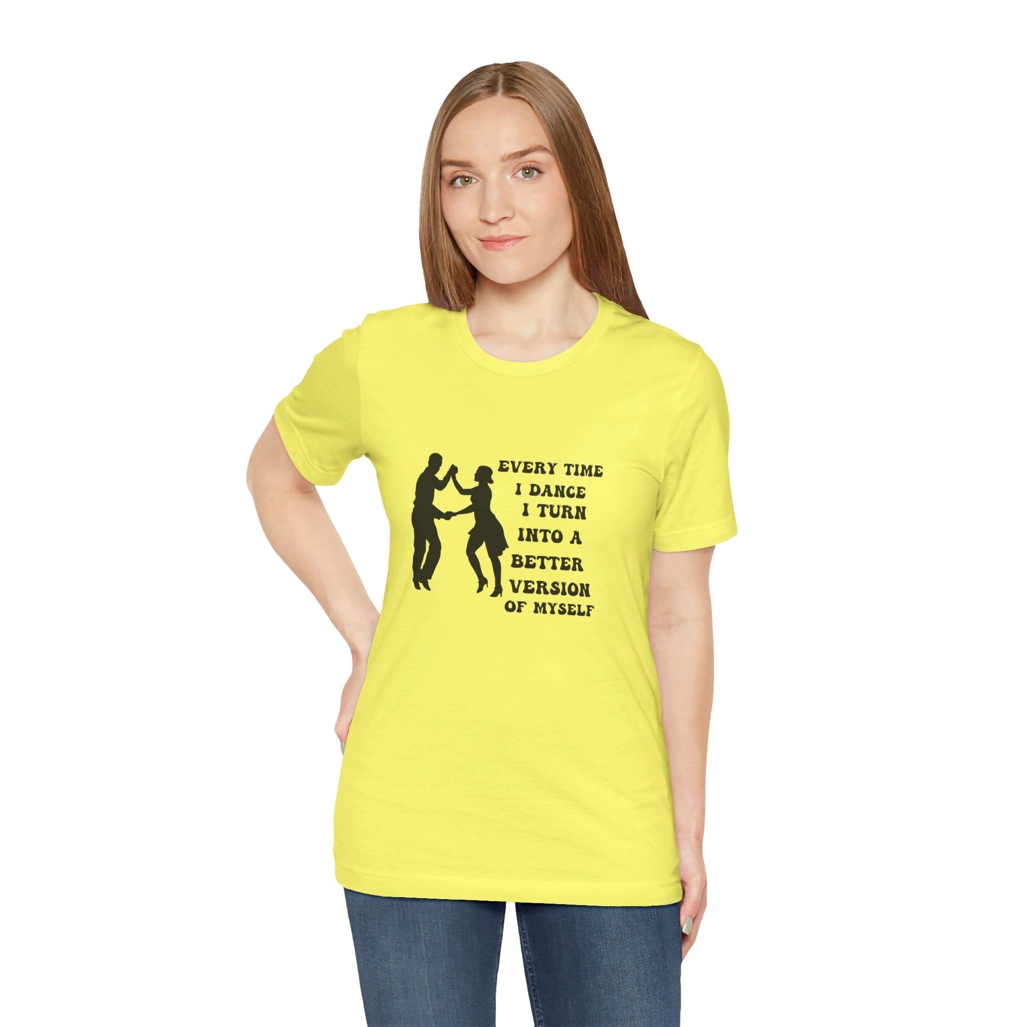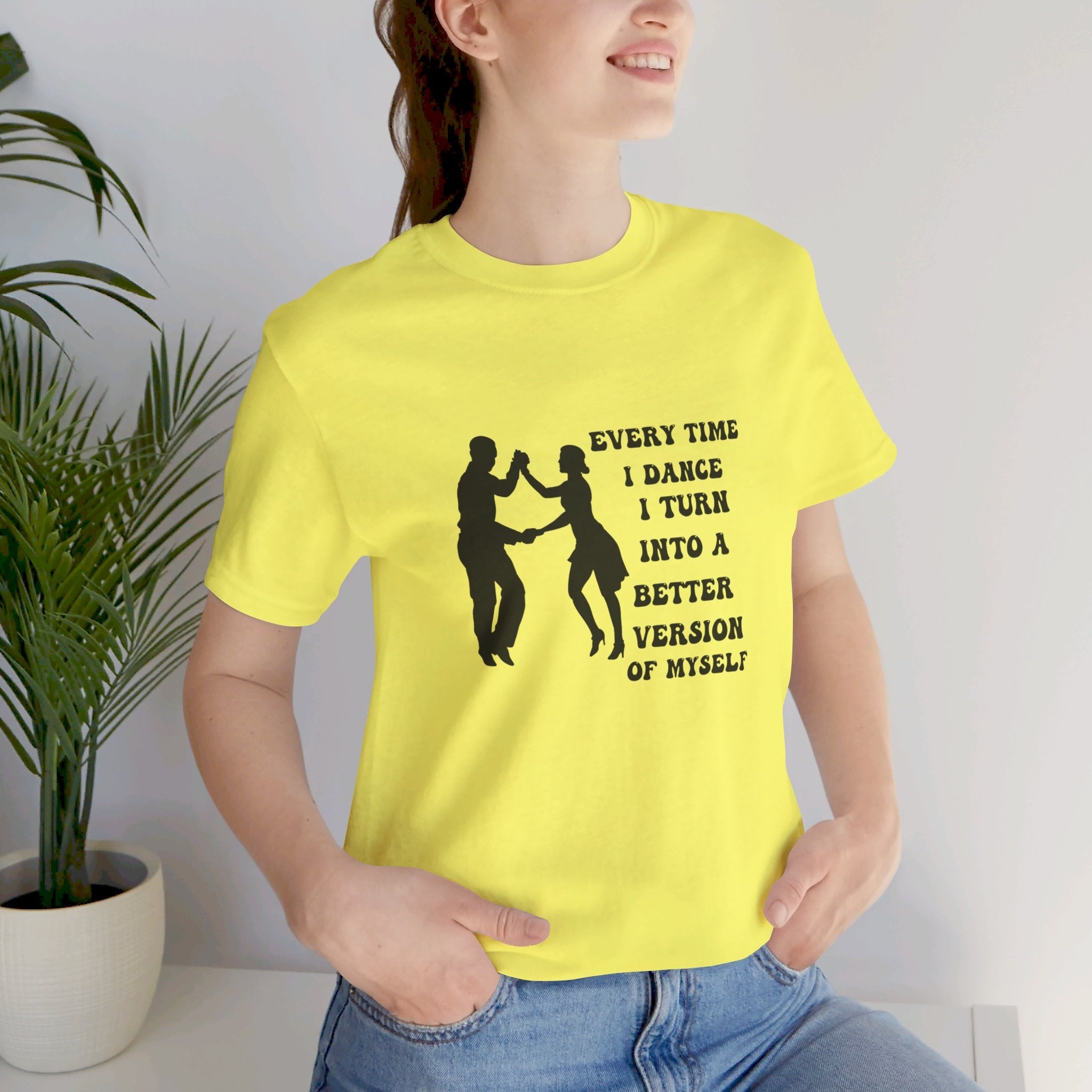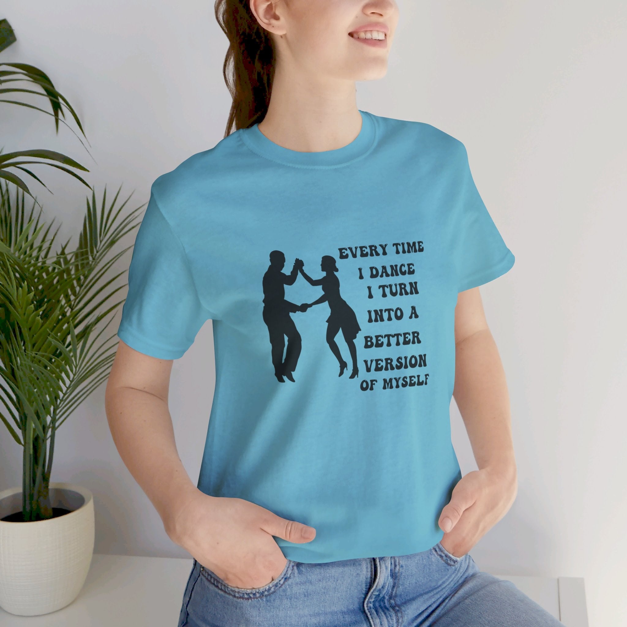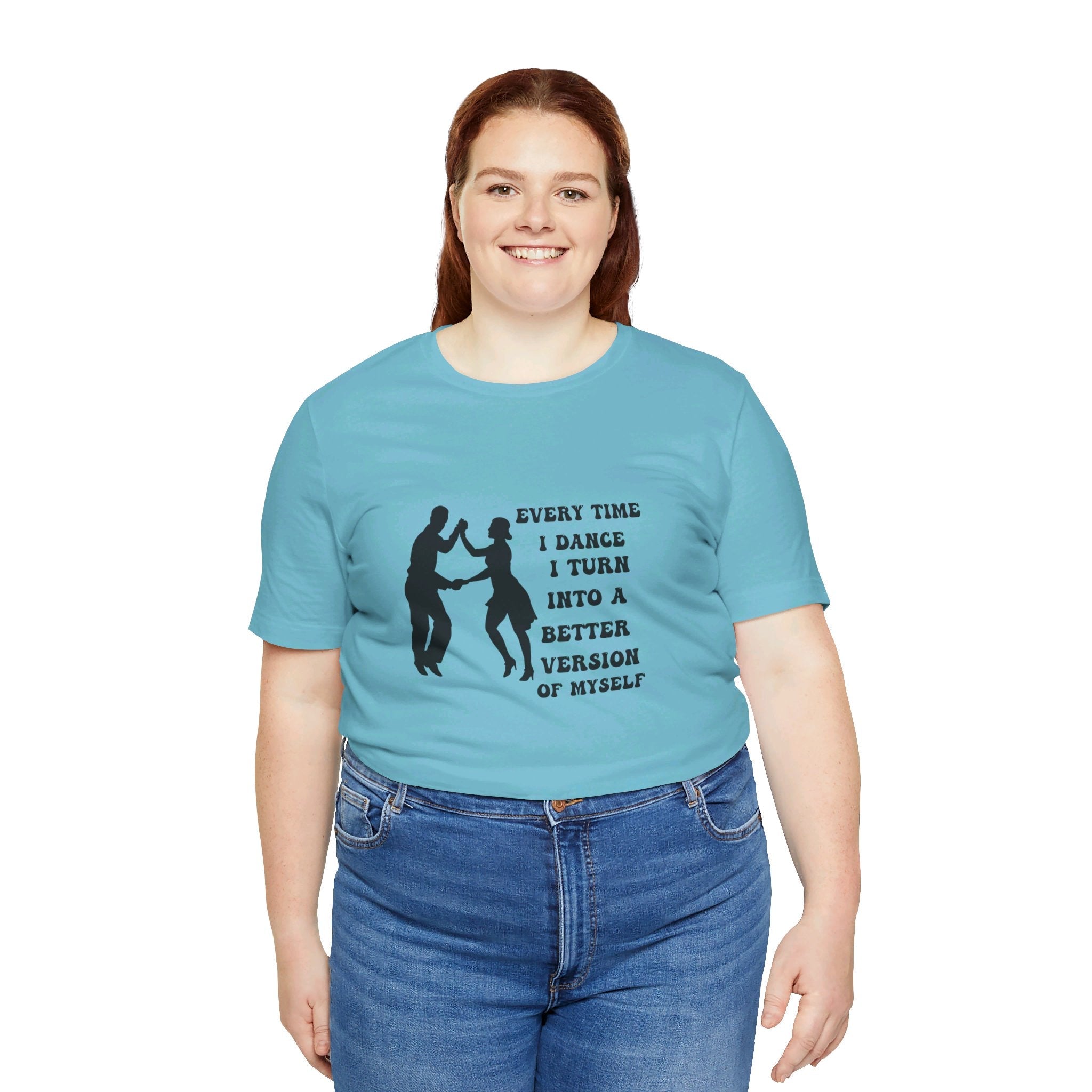 Celebrate the transformative power of dance with our "Every Time I Dance I Turn Into A Better Version Of Myself" shirt. Perfect for those who find joy, growth, and self-improvement through dancing, this shirt is a stylish and meaningful addition to any dancer's wardrobe. Whether you’re a seasoned dancer or just starting, this shirt captures the essence of what dance means to you.