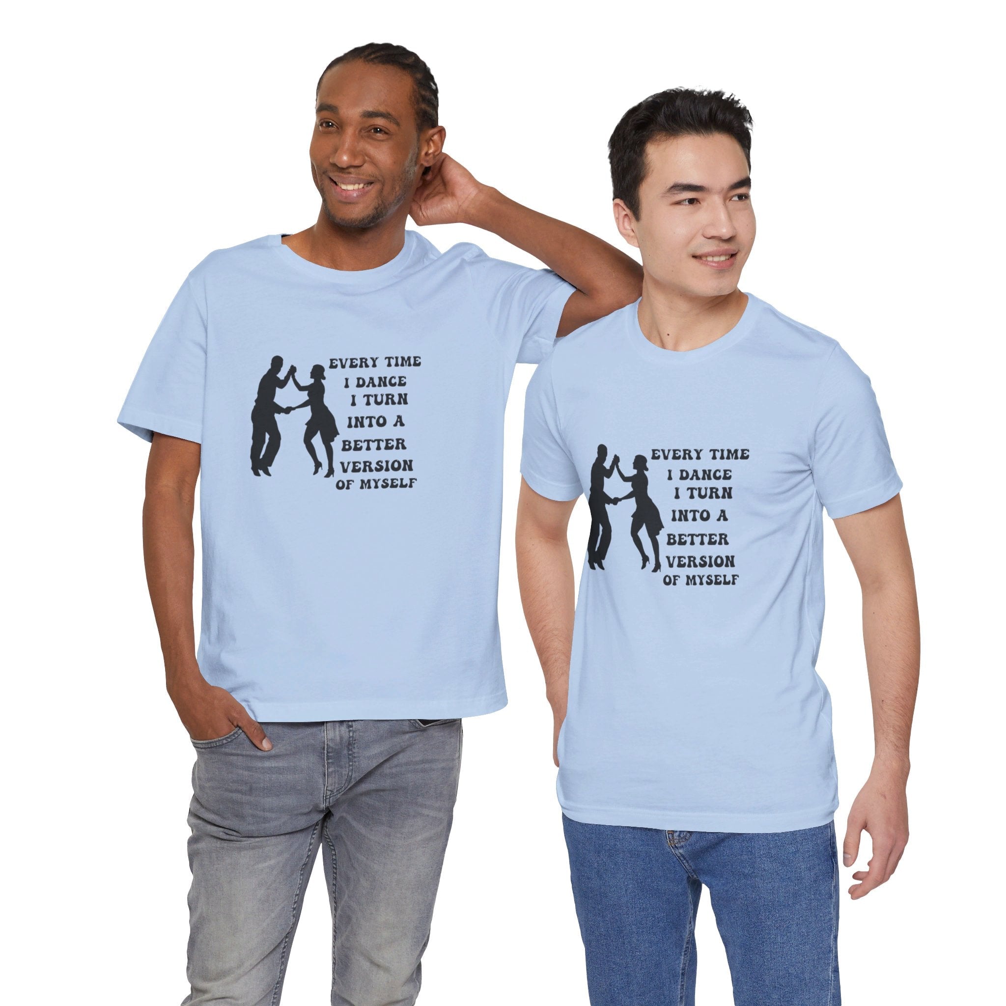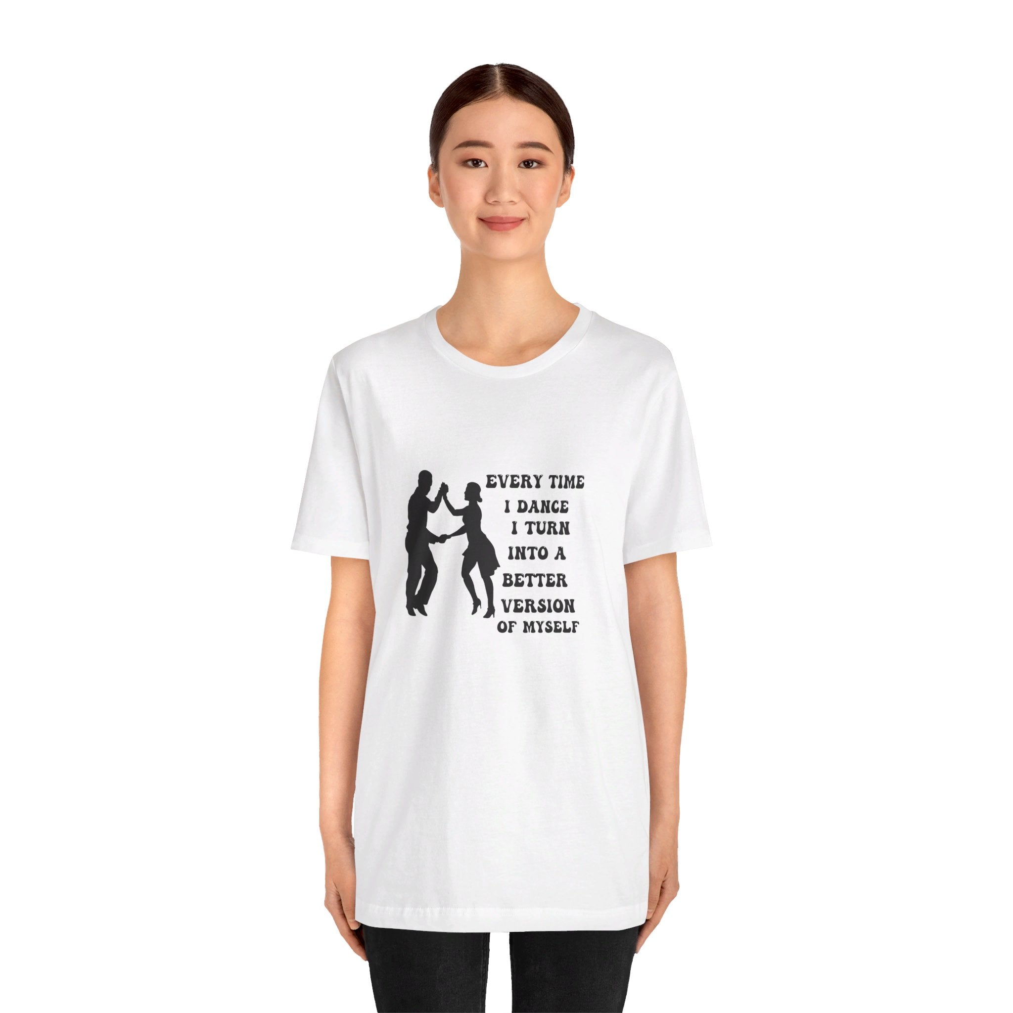 This shirt is more than just a piece of clothing—it's a statement of your dedication to personal growth through dance. Wear it to inspire yourself and others to embrace the transformative power of dancing. It also makes a thoughtful gift for friends, family, or dance partners who share your passion for dance.