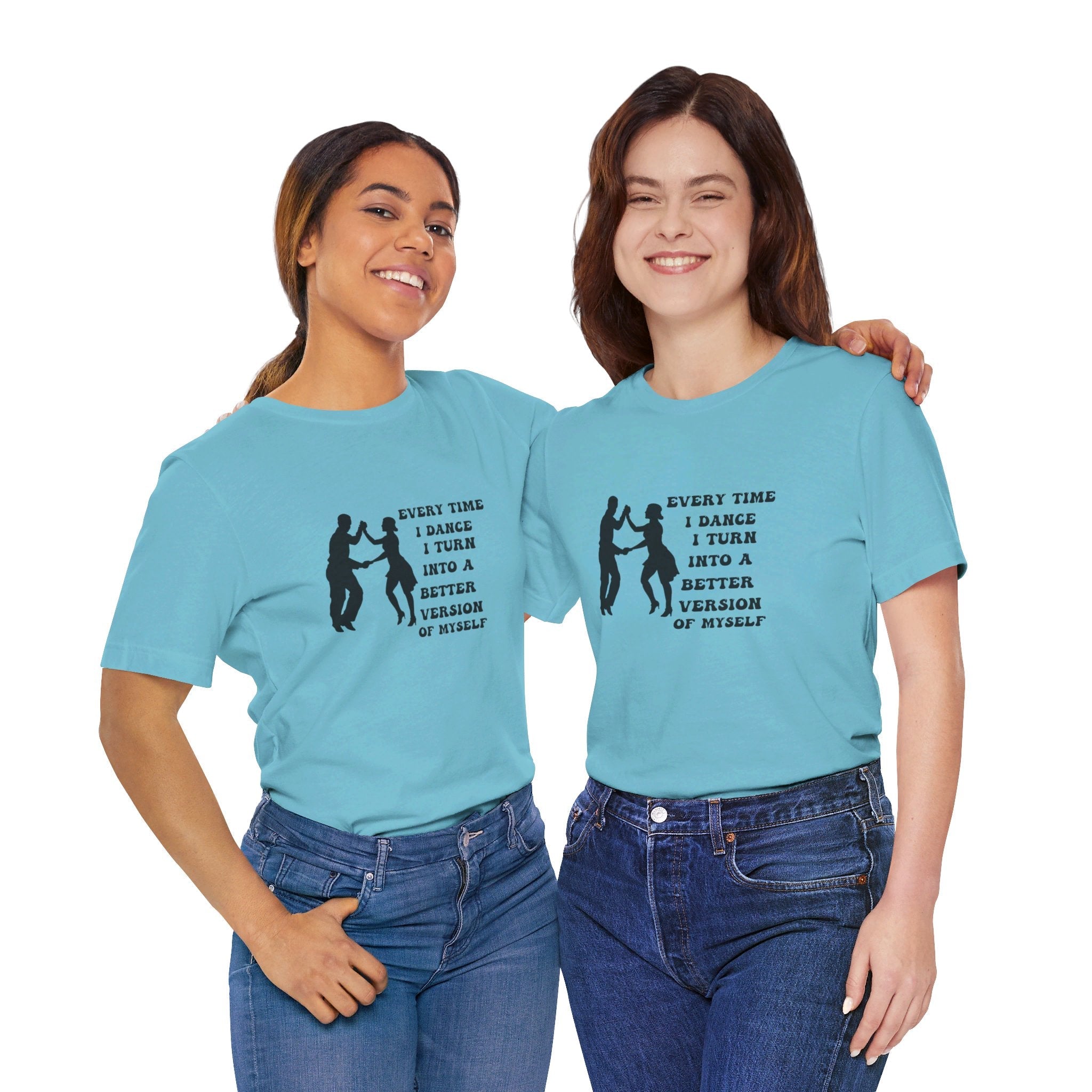 - **Inspiring Design:** The uplifting slogan "Every Time I Dance I Turn Into A Better Version Of Myself" is printed in vibrant, durable colors. It’s a powerful reminder of the positive impact dance has on your life.