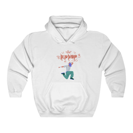 A cool 'Hip hop' themed unisex heavy blend hooded sweatshirt is relaxation itself. The material is a thick blend of cotton and polyester. This makes for a plush, soft feel alongside warmth. A spacious kangaroo pocket hangs in front. The hood's drawstring is the same color as the base sweater.