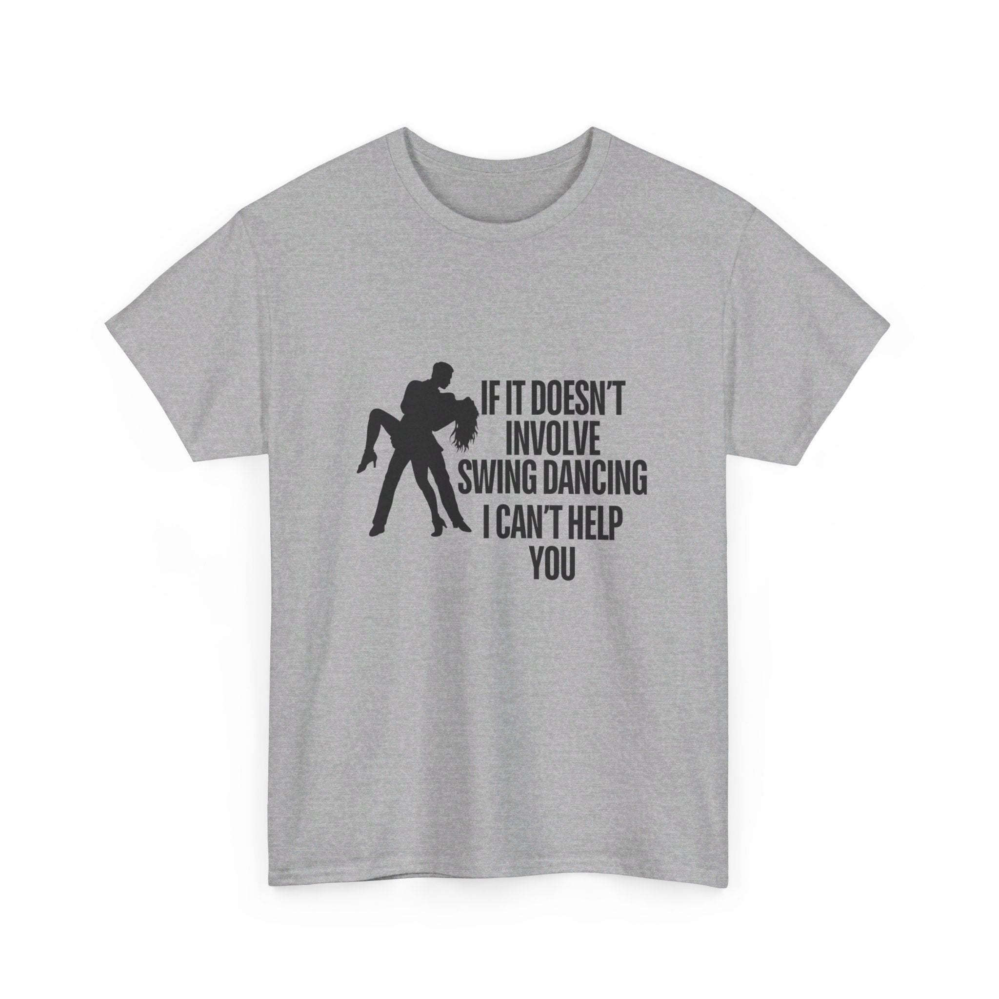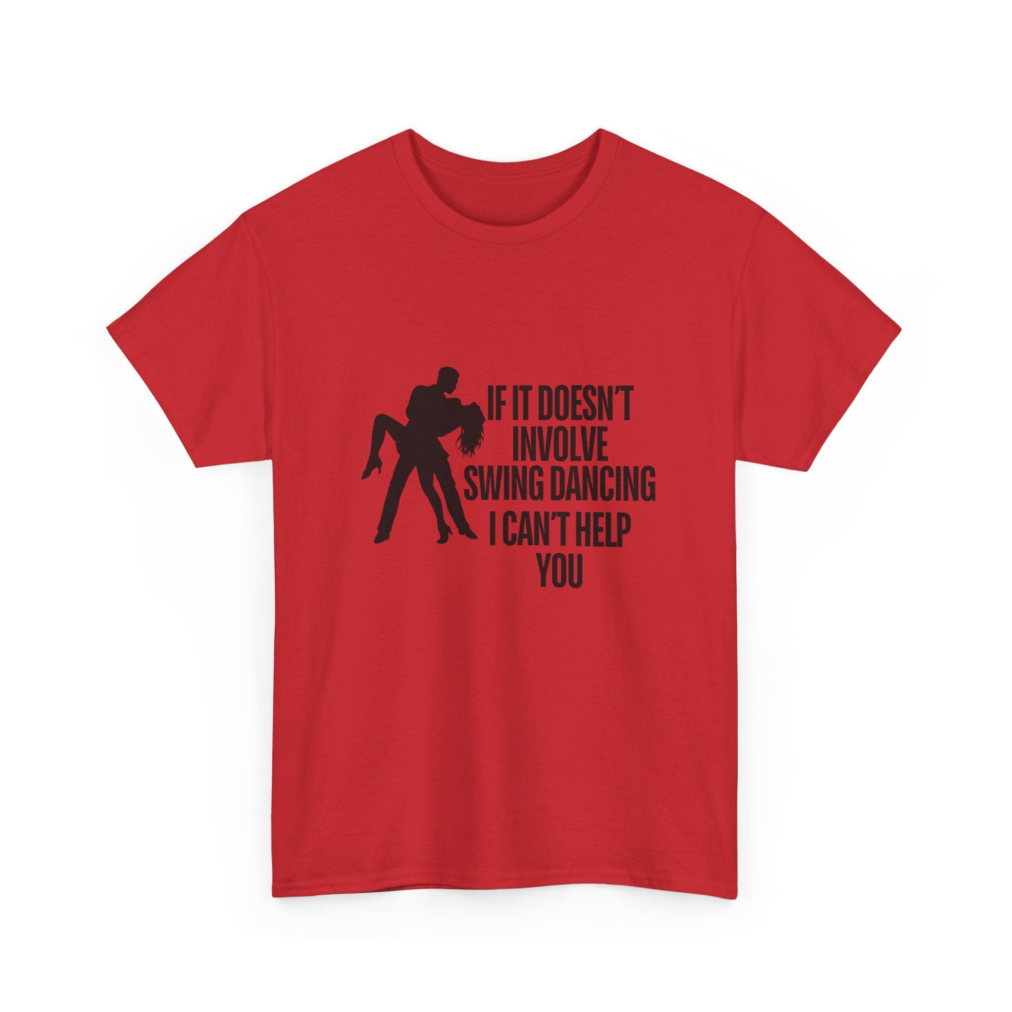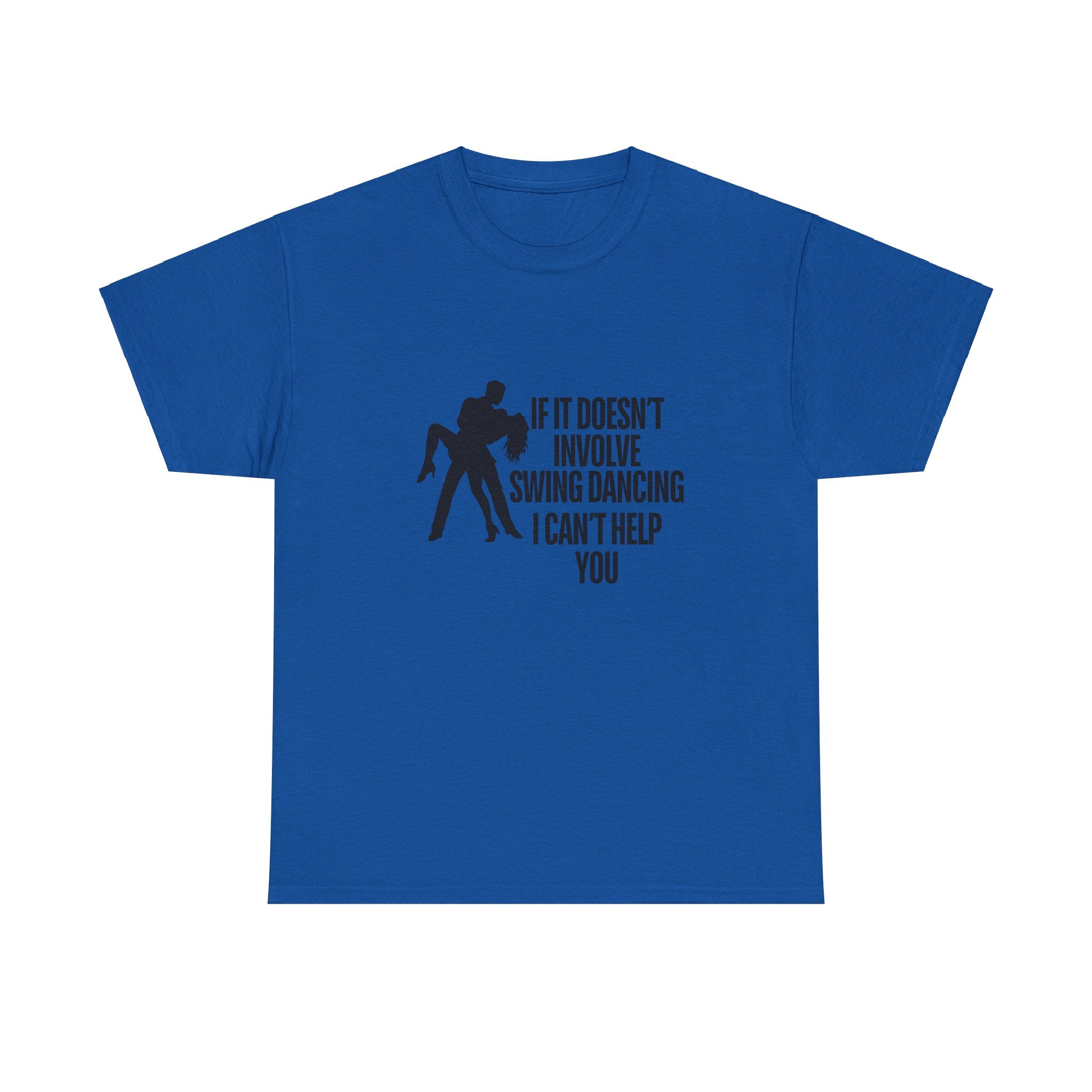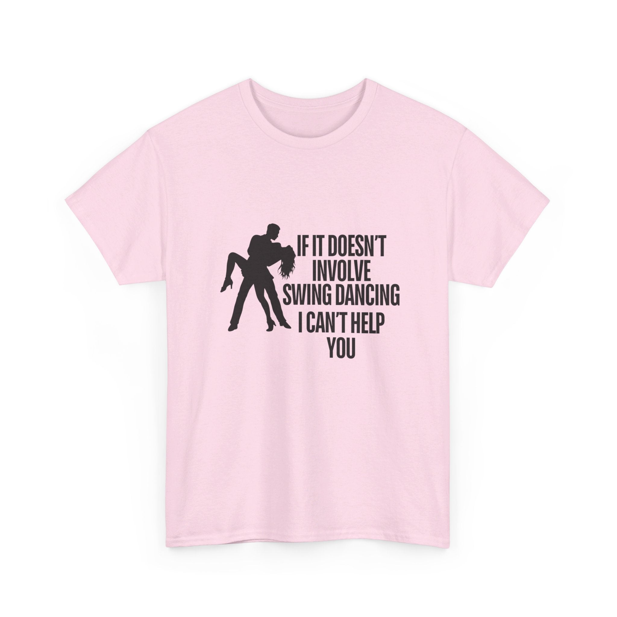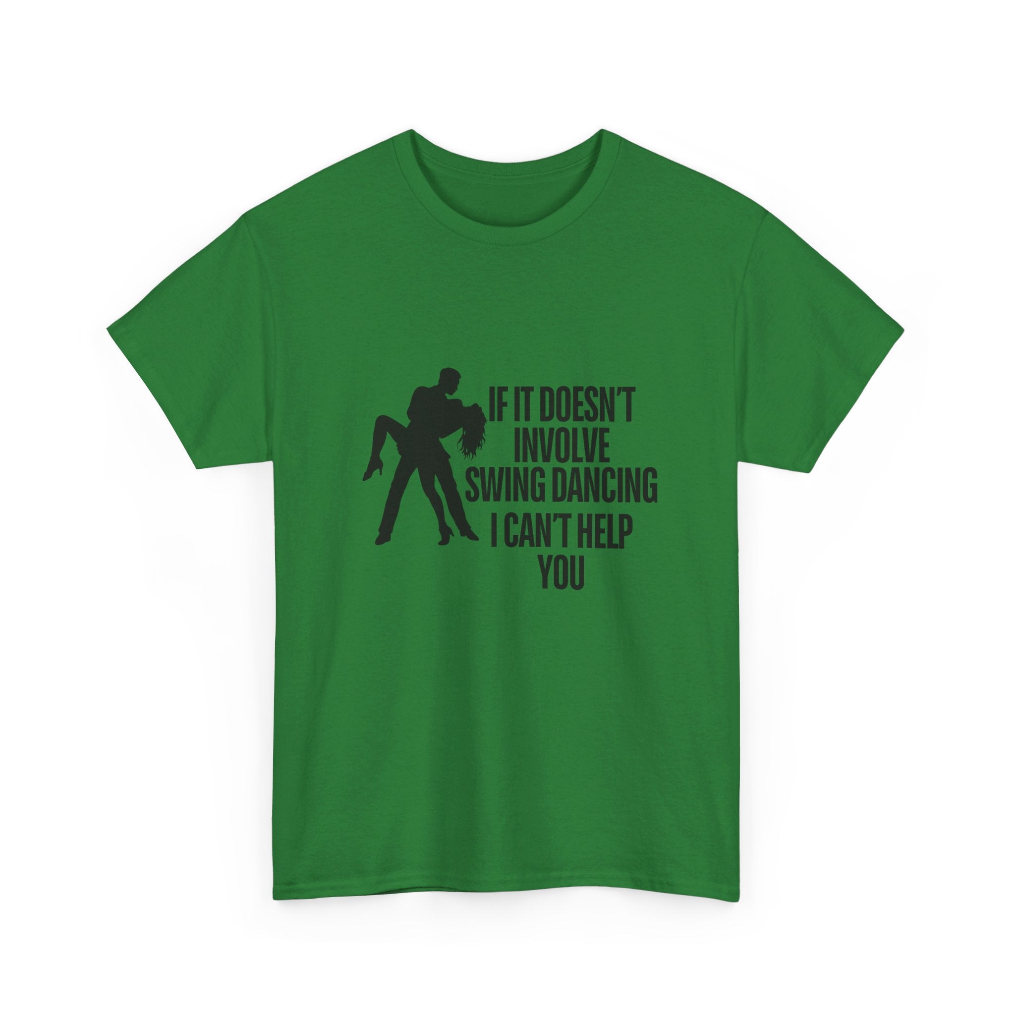 - **Eye-Catching Design:** The bold statement "If It Doesn't Involve Swing Dancing I Can't Help You" is printed in vibrant, long-lasting colors, making it a standout piece wherever you go.
