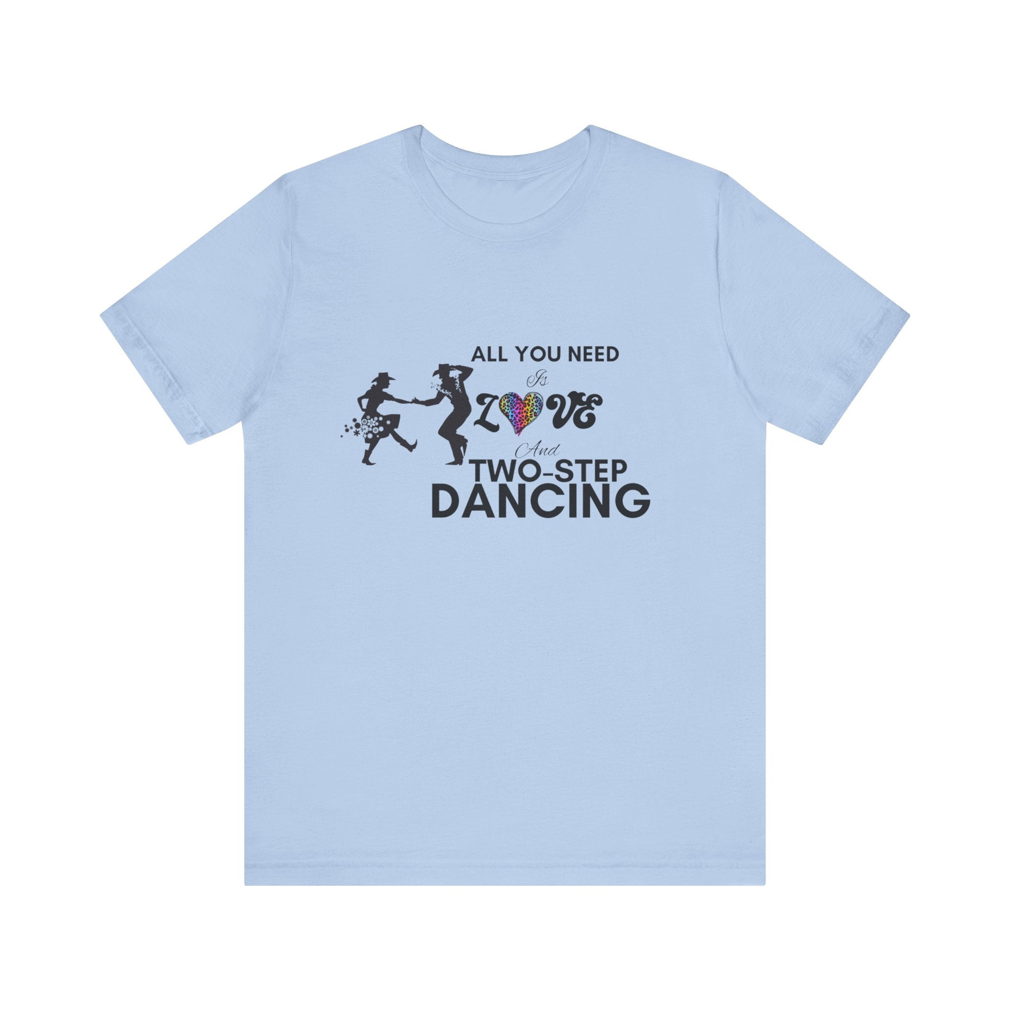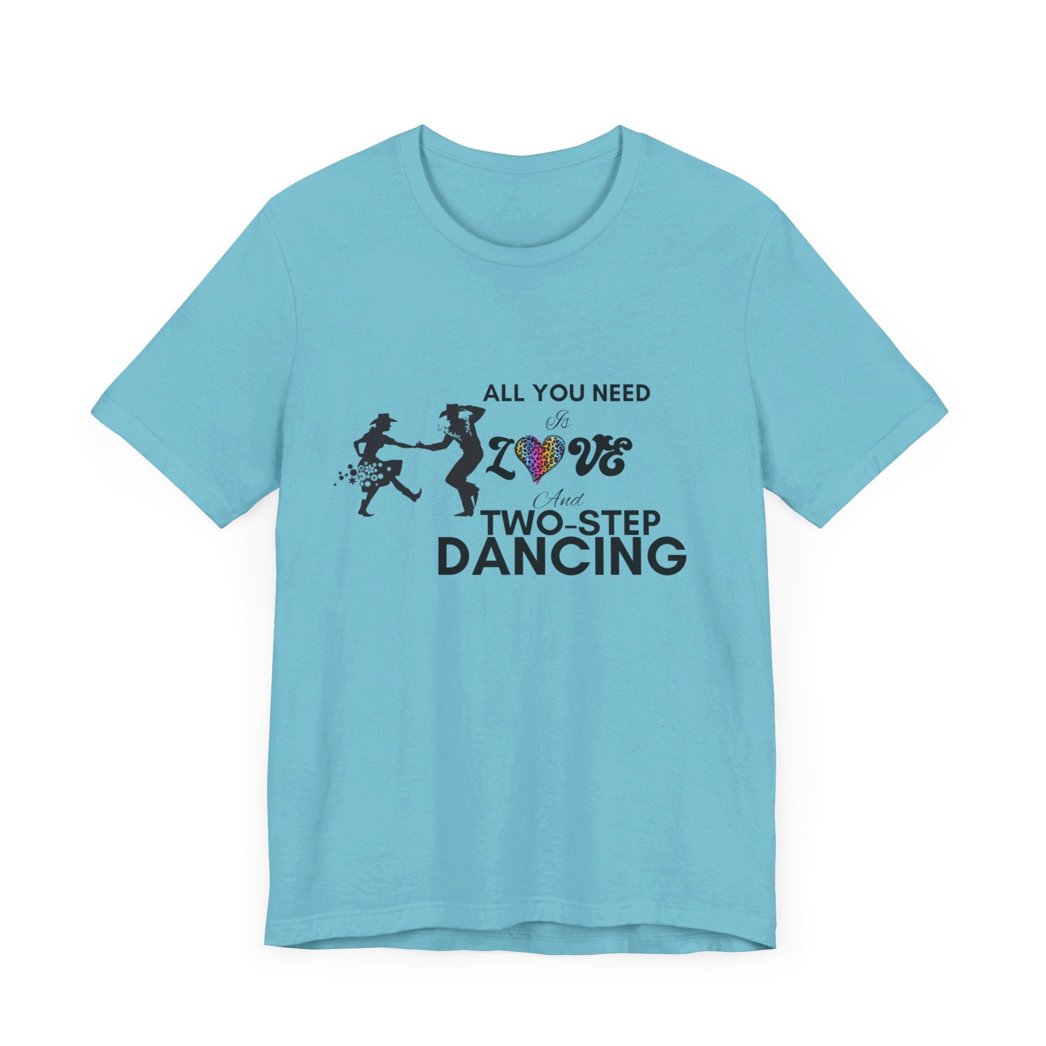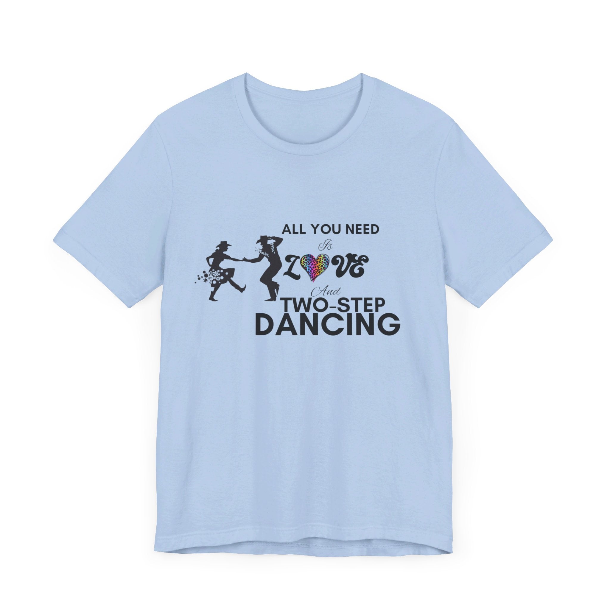 - **Charming Design:** The "All You Need is Love and Two-Step Dancing" graphic beautifully captures the essence of dance and love in a stylish design.